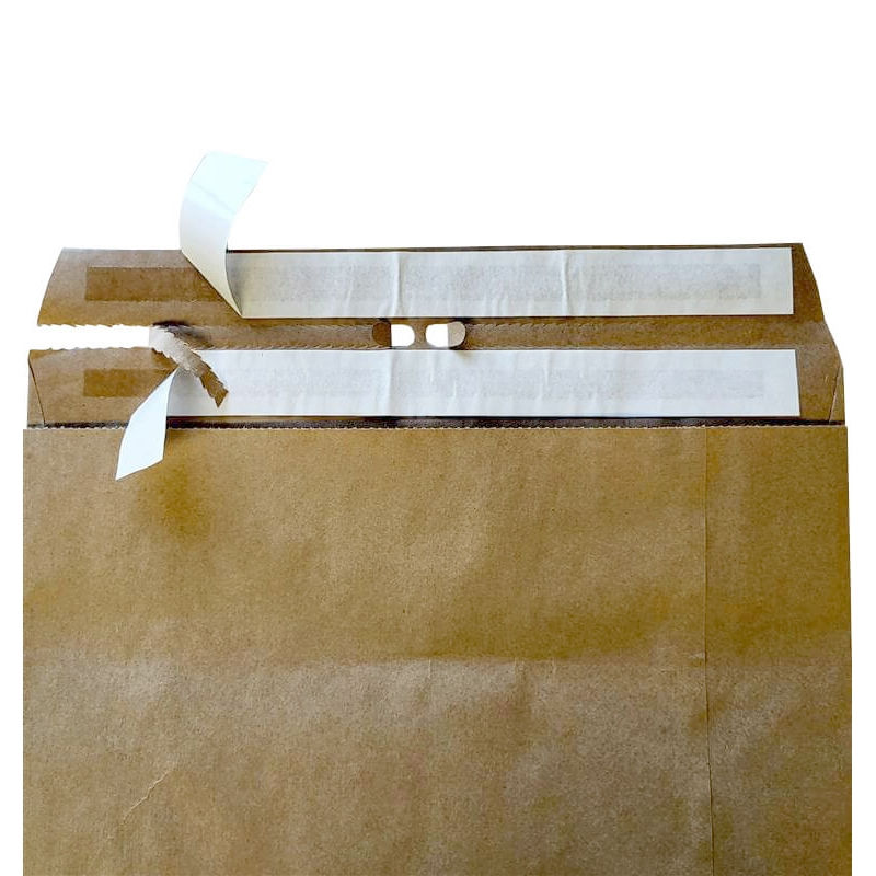 Double peel and seal (Resealable/Reusable), 100gsm natural kraft.