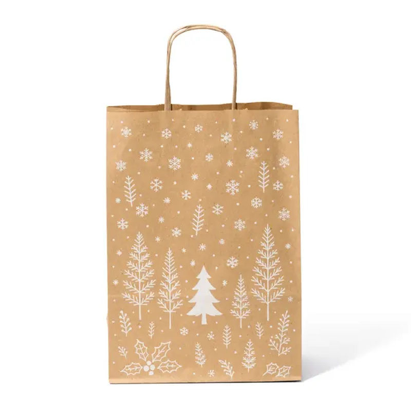 Spread some holiday cheer with these Enchanted Forest Carrier Bags. The warm, rustic design featuring woodland trees brings the spirit of Christmas to every gift. Whether you’re wrapping artisanal products, seasonal treats, or thoughtful gifts, these sturdy brown kraft bags add that perfect festive touch. The twisted handles offer strength for worry-free carrying, while the eco-friendly material ensures your packaging matches your commitment to sustainability. Say goodbye to plastic and give your customers a charming, reusable bag that they’ll love as much as the gift inside!