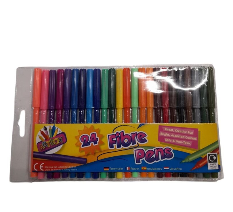 24 fine tip Fibre Colouring Pens. Dimensions – Height: 25 cm, Width: 13.4 cm, Depth: 1 cm.
