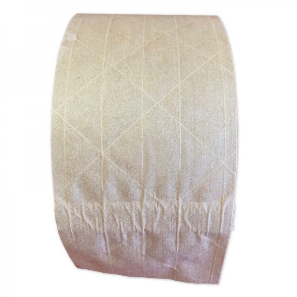 Natural kraft carton tape with three-way fibreglass reinforcement and water activated adhesive.