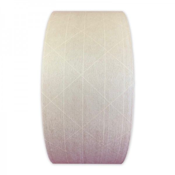 Natural kraft carton tape with three-way fibreglass reinforcement and water activated adhesive.