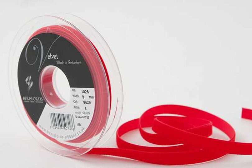 9Mm Velvet On 5M Reel Rouge – A High Quality Velvet Ribbon By Berisfords Ribbons