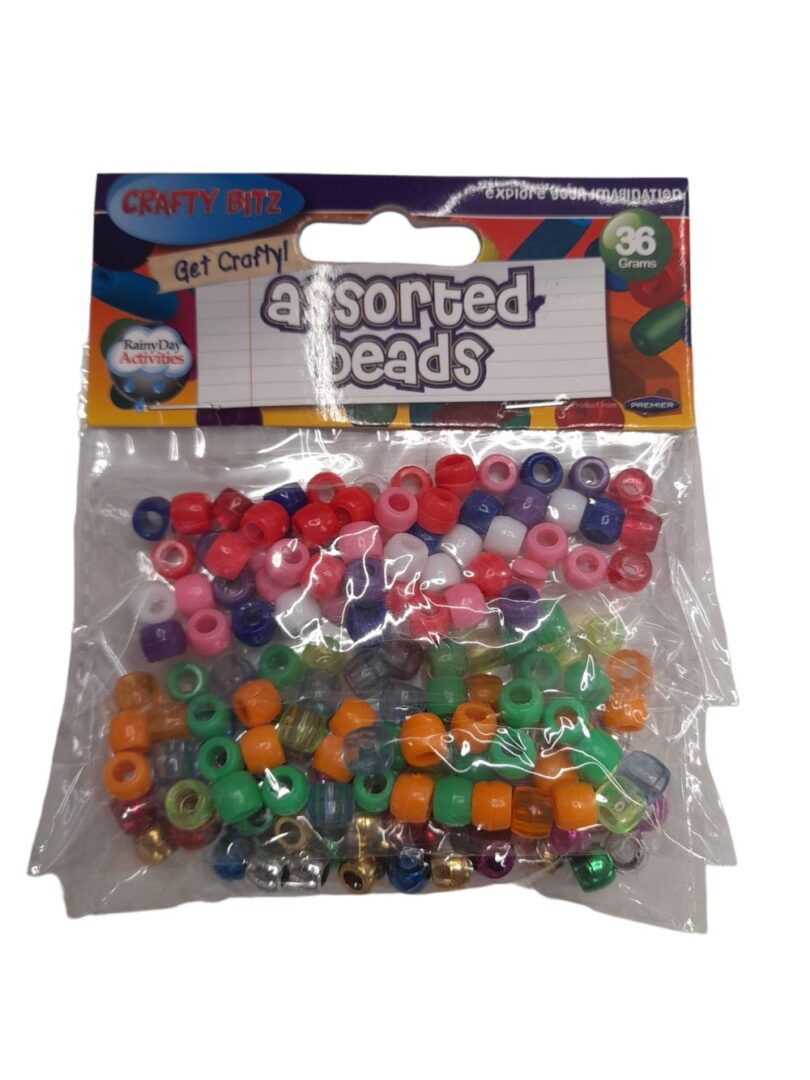 Bag of 36g Assorted Plastic Beads by Crafty Bitz. Perfect for jewellery making. Assorted colours.