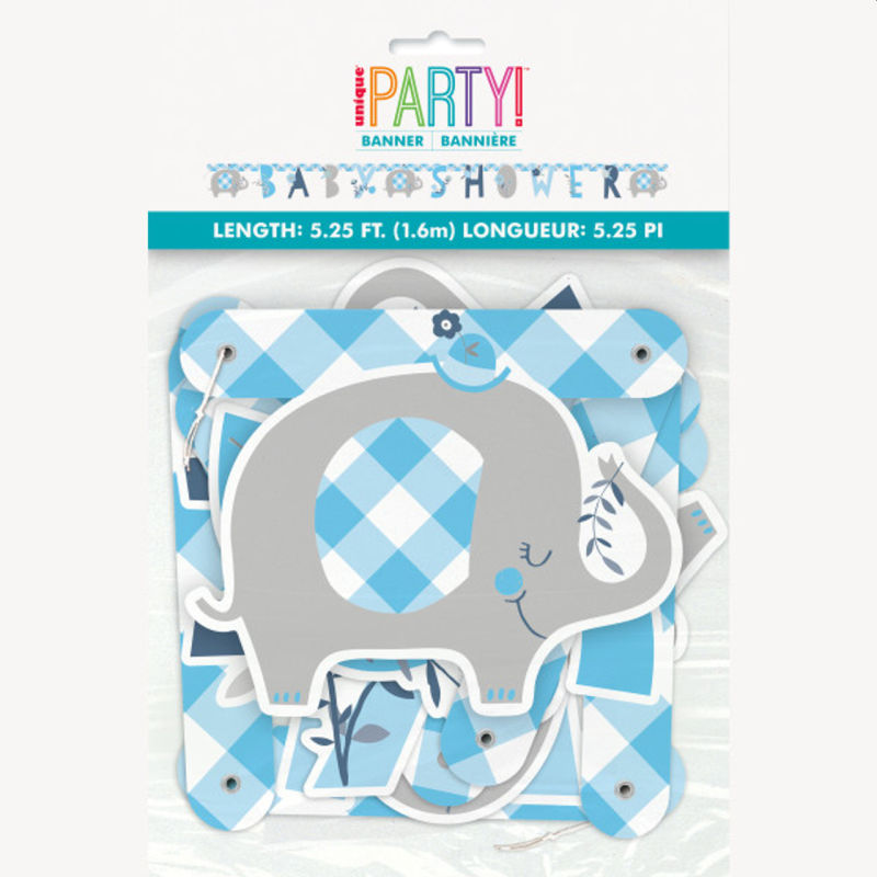 Blue Floral Baby Shower Elephant Jointed Banner. This banner features 3 elephants and a “Baby Shower” headline. Your baby shower or gender reveal party is not complete without this banner. Save your time on decorating with the help of this easy-to-install banner. This banner can be used indoor or outdoor.