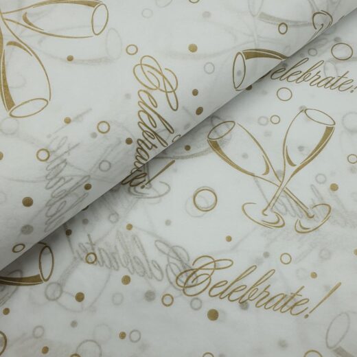Printed Stock Tissue Wrapping Paper. Machine Finished (MF) Luxury Grade Tissue Wrapping Paper. Large selection of designs. 100% recycled pulp fibres/100% recyclable content All regular colors are beater dyed to guarantee consistency and resist running, bleeding or fading. 18gsm paper weight, 500 x 750mm size which is 20 x 30 inches.
