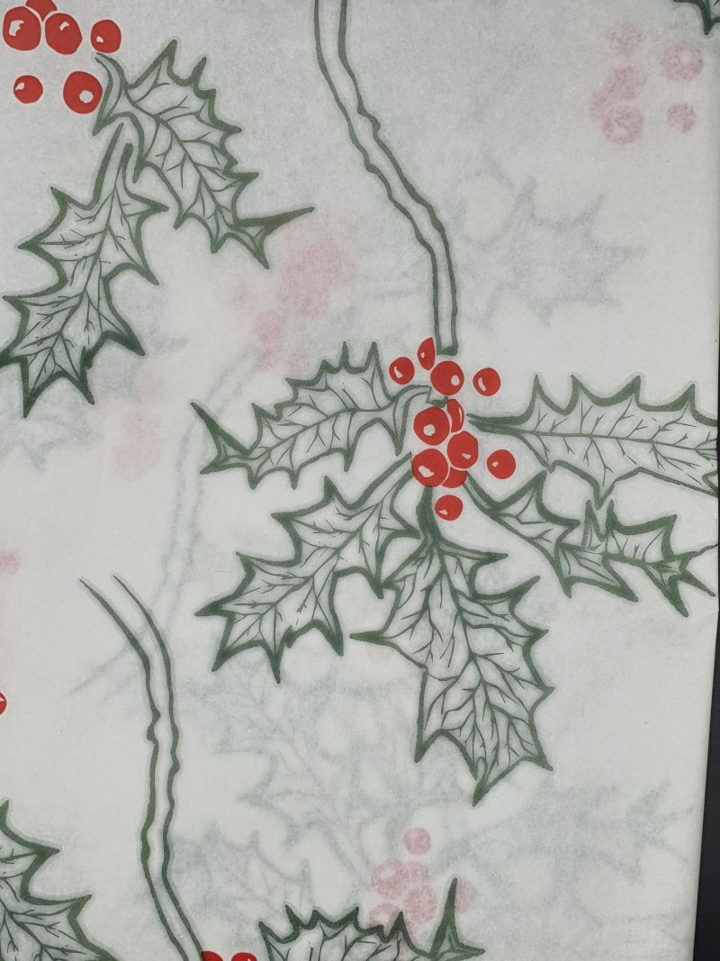 1 Sheet Of White/Red Christmas Holly Tissue Paper 500mm x 750mm 18gsm