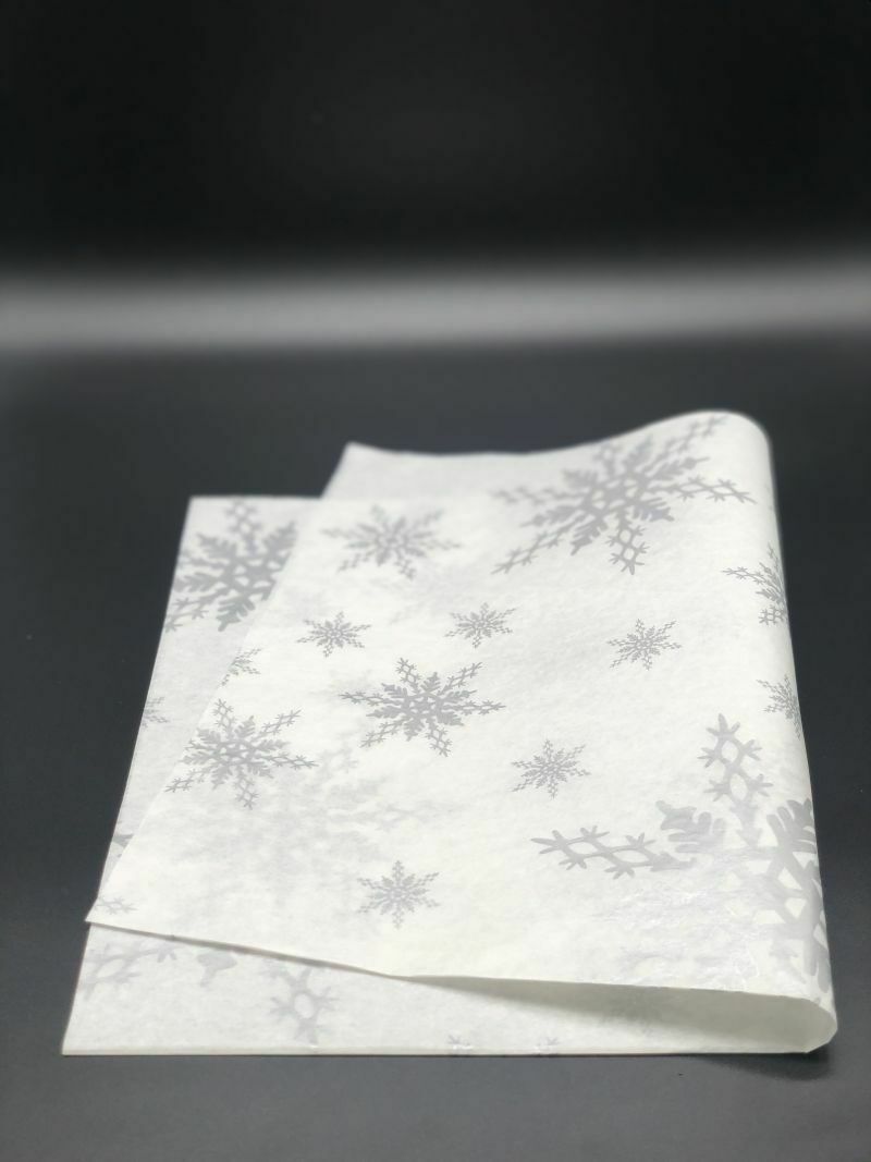 1 Sheet Of White Paper With Silver Snowflake Christmas Tissue Paper 21gsm 500mm x 750mm