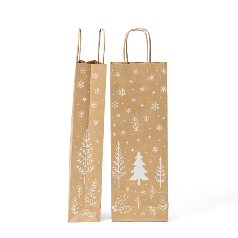 The Enchanted Forest One Bottle Bag is perfect for packaging wine, spirits, or gourmet oils this holiday season. Its sturdy kraft paper and festive forest print make it a charming and eco-friendly way to send your bottled gifts. With twisted handles for easy carrying, this bag keeps your gifts looking neat and festive with minimal effort. It’s ideal for wine merchants, delicatessens, or anyone offering special bottles this Christmas.