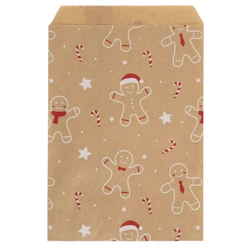 Gingerbread and goodies galore! Our Gingerbread Brown Paper Counter Bags are just the thing for packing up festive treats, small gifts, or bakery delights. Printed all over with cute gingerbread faces, these bags will have everyone smiling from ear to ear, making them a charming and cheerful alternative to your everyday packaging.