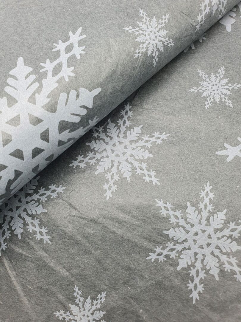 Grey MG Paper With White Snowflake Christmas Tissue Paper 21gsm 500mm x 750mm