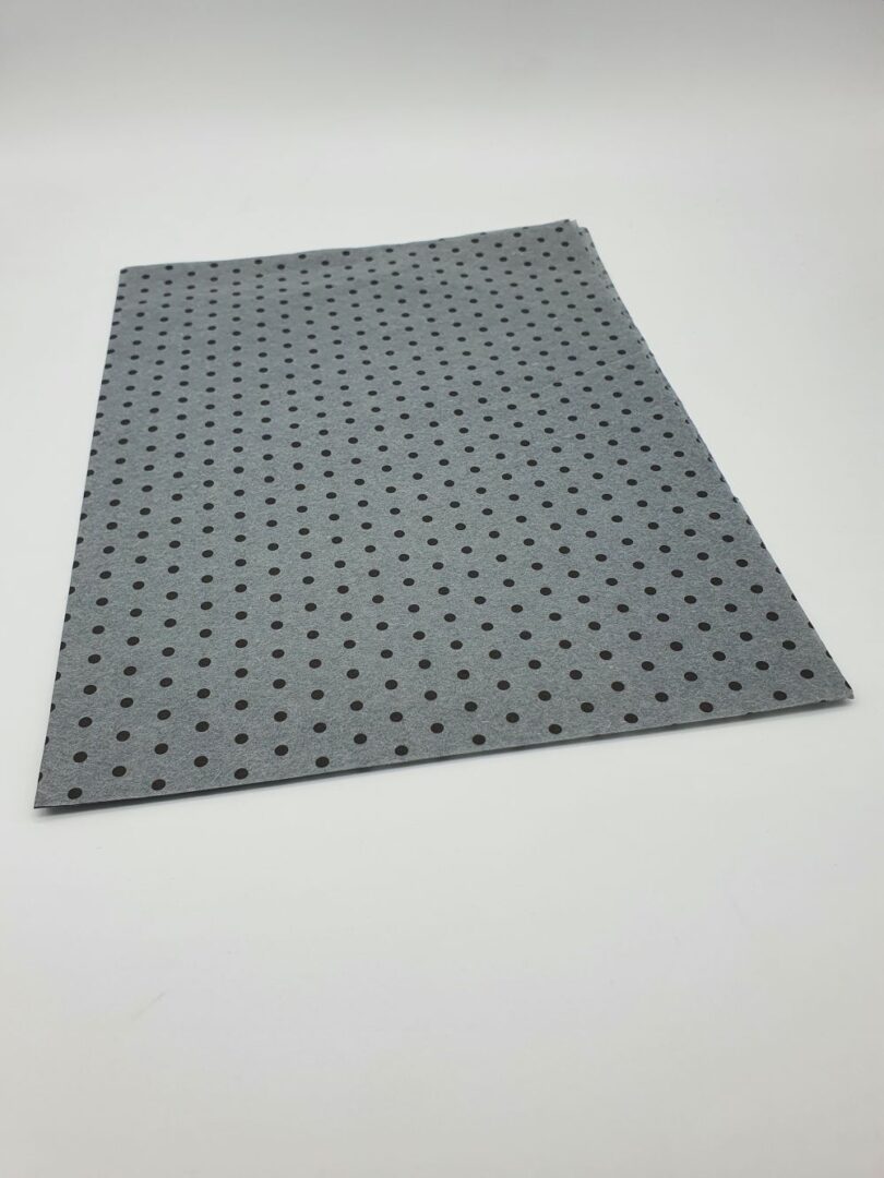 Beautiful gift quality grey acid free 18gsm MF crisp tissue with a delicate black spot design.