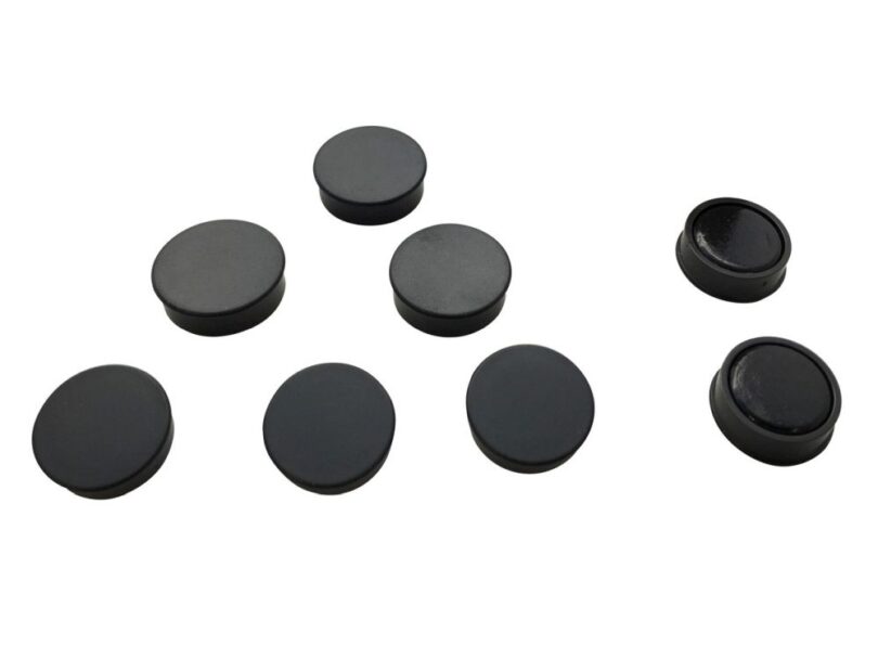 Pack of 12 Black 24mm Magnets. Pack of 12 Strong Black Round Magnets by Janrax. Black Plastic Covered Magnets. 24mm Diametre and approx 7mm thick Ideal for Magnetic Whiteboards, Fridges and around the home and office.