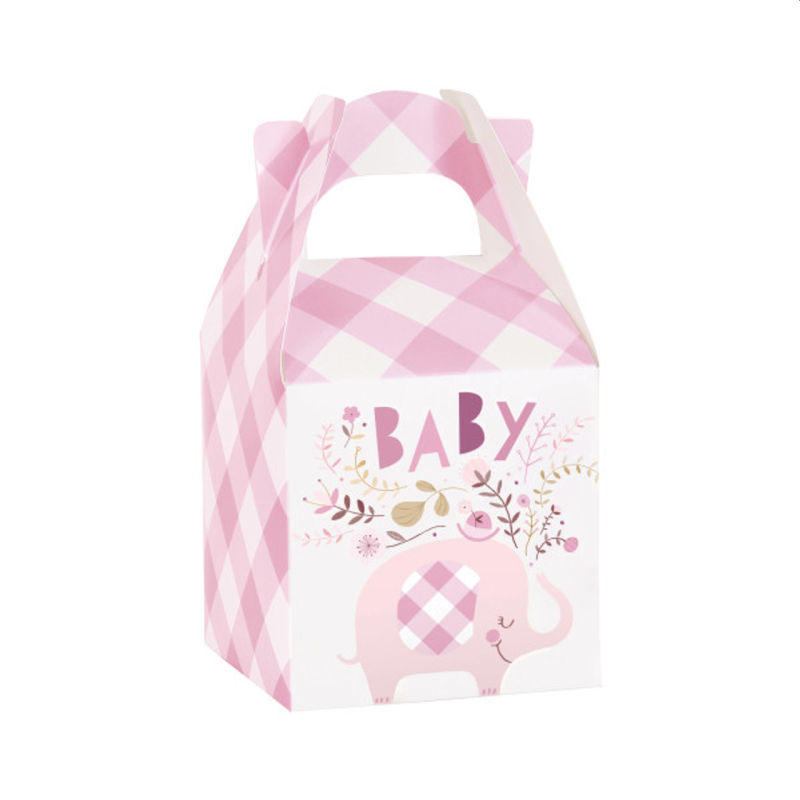 Pack of 8 Pink Floral Elephant Favor Boxes. Bring more fun to your child’s birthday party and let the guests take home these lovely elephant treat boxes. These treat boxes are ideal as party giveaways and fill them with sweet treats and party favor. These treat boxes are made of durable cardstock that is strong enough to hold various treats without tearing. Simply push the opposite corners toward the center in a quick motion to pop up the box.
