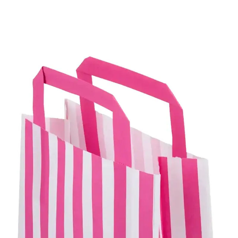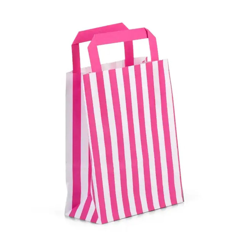 7″ x 9″ + 3″ Shocking Pink Candy Stripe Paper Carrier Bags 18cm x 23cm + 8.5cm