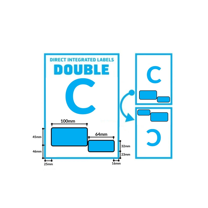 Style C Double Integrated Label 100mm x 45mm / 64mm x 32mm